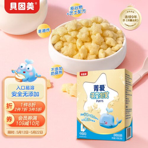 当前的位置: 首页 > 今日值得买 > 贝因美(Beingmate)菁爱萌星牛奶味泡芙40g 无防腐剂非油炸 儿童宝宝零食磨牙饼干
