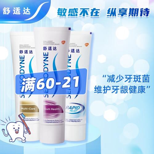 当前的位置: 首页 > 今日值得买 > 舒适达抗敏感套装修复美白薄荷含氟牙膏多重护理套装3支装 缓解牙齿敏感 多效70g+劲速70g+牙龈100g