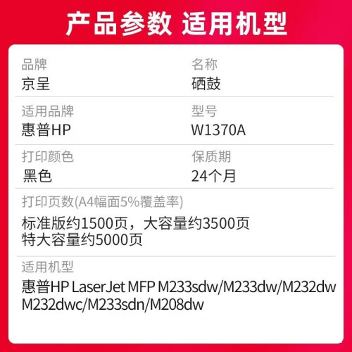 当前的位置: 首页 > 今日值得买 > 京呈m232dw硒鼓137a硒鼓W1370A适用惠普m233dw粉盒m233sdw打印机m208dw 【带芯片】升级大容量3500页
