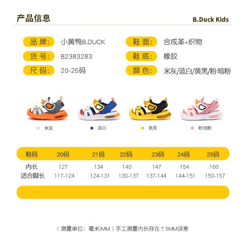 当前的位置: 首页 > 今日值得买 > B.Duck小黄鸭童鞋男童凉鞋夏季新款男孩软底透气沙滩时尚凉鞋 米灰 20码内长约127mm