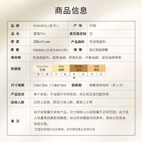 当前的位置: 首页 > 今日值得买 > 金可儿(Kingkoil)乳胶床垫软硬适中五星酒店静音独立弹簧床垫子1.8米*2米 碧玺Pro 碧玺 Pro(厚28cm) 180*200cm