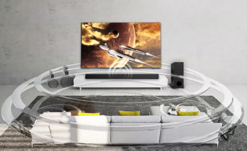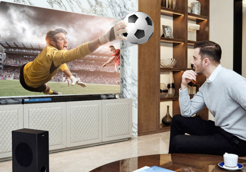 音效方面,杜比数字+(Dolby DigitalPlus)技术,轻松营造出全方位的沉浸式音效。无论您是在观看电影、电视节目、在线视频还是音乐会都可始终确保您享受一致的音质。同时,凭借300W强劲功率,带来震撼的影院级音效让客厅秒变影院,声场更加立体饱满,立体音效轻松覆盖,50m2的大客厅。