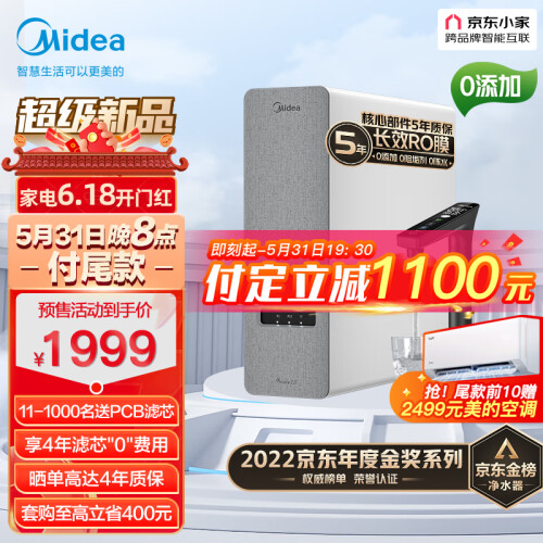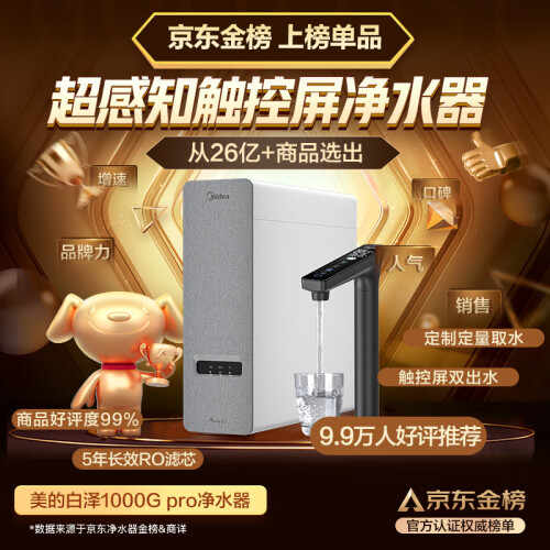 当前的位置: 首页 > 今日值得买 > 美的(Midea)净水器家用净水机白泽1000G PRO 5年RO反渗透过滤 厨下式直饮净水器 智显触控屏 双出水2.72L/分