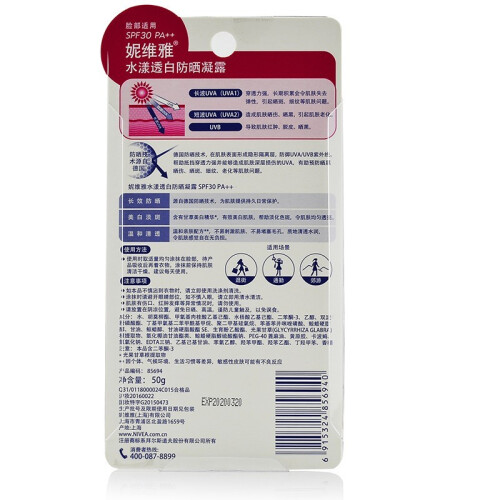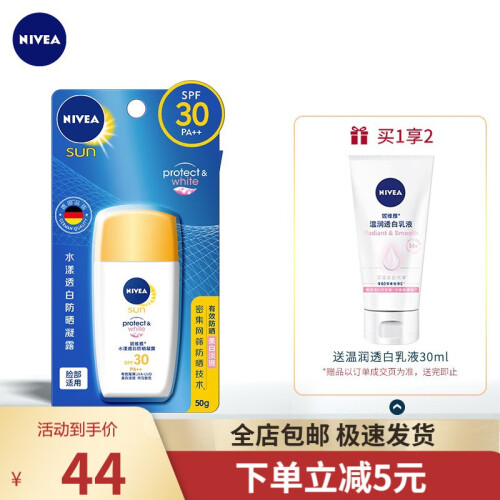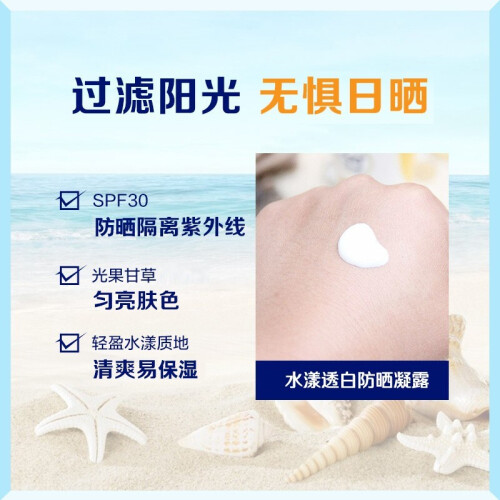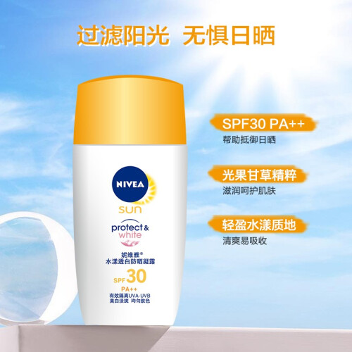 当前的位置: 首页 > 今日值得买 > 妮维雅(NIVEA) 防晒霜男女士通用清爽控油保湿不油腻防汗隔离面部户外防晒乳液 水漾透白防晒凝露50g SPF30 PA++