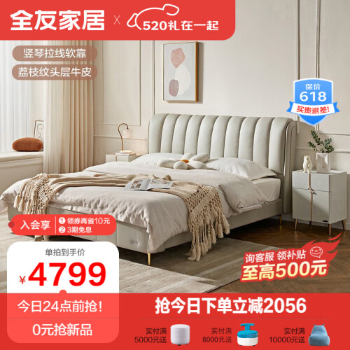 当前的位置: 首页 > 今日值得买 > 全友家居现代简约皮床牛皮床屏舒适高弹海绵加高靠背排骨架皮床116015 1.8m皮床+床头柜C*2+265床垫