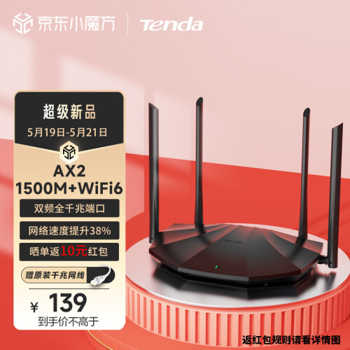 当前的位置: 首页 > 今日值得买 > 腾达(Tenda)AX2 AX1500 WiFi6千兆无线路由器 5G双频 智能家用穿墙高速路由 IPv6 配千兆网线
