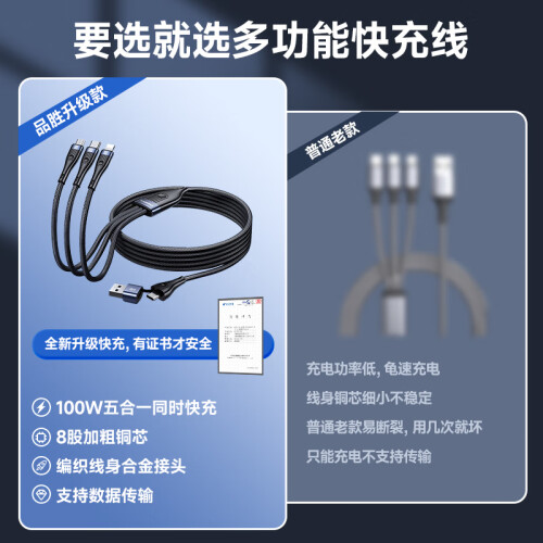 当前的位置: 首页 > 今日值得买 > 品胜 数据线三合一PD100W20W快充多头一/二拖三Type-c安卓充电线器适用苹果iPhone14/13华为荣耀小米 1.2m宝石蓝 100W快充|大电流不伤机