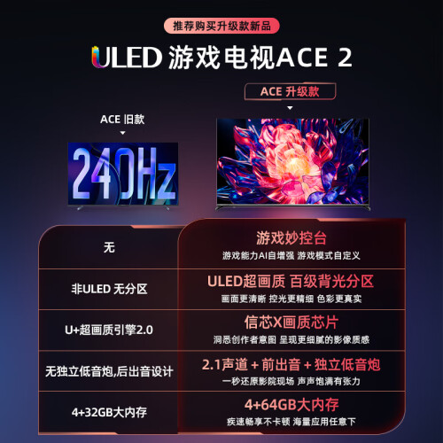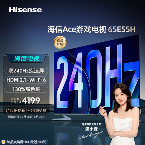 当前的位置: 首页 > 今日值得买 > 海信游戏电视Ace 2023款 65英寸240Hz高刷HDMI2.1 4+32GB 4K全面屏液晶电视机65E55H 以旧换新