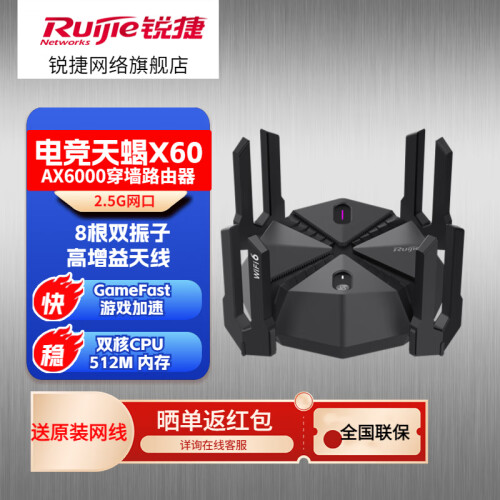 当前的位置: 首页 > 今日值得买 > 锐捷天蝎电竞路由器X60PRO 无线路由器千兆WiFi6穿墙王 5G双频AX6000 2.5G口 天蝎X60 PRO【2.5G网口 AX6000】