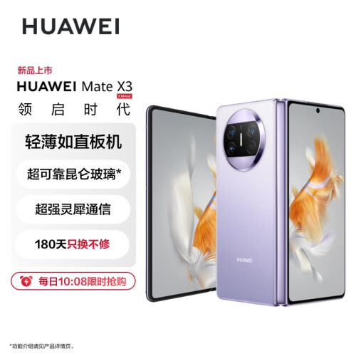 当前的位置: 首页 > 今日值得买 > 华为/HUAWEI Mate X3 折叠屏手机 超轻薄 超可靠昆仑玻璃 超强灵犀通信 512GB 羽砂紫 鸿蒙智能旗舰