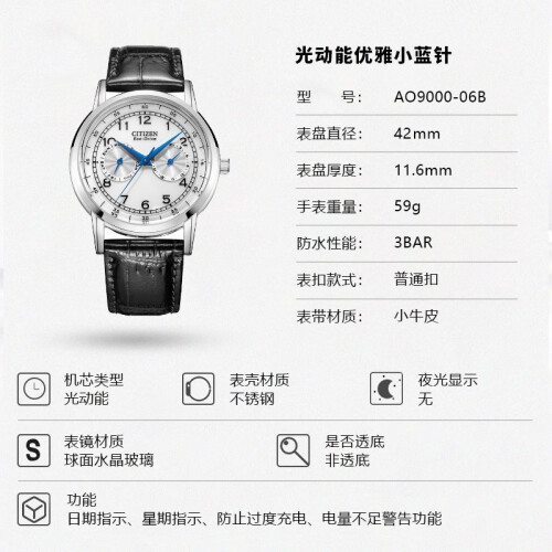 当前的位置: 首页 > 今日值得买 > 西铁城(CITIZEN) 【网红小蓝针】光动能皮表带时尚休闲经典款防水商务男士腕表 AO9000-06B