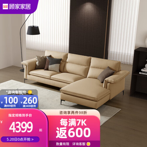 当前的位置: 首页 > 今日值得买 > 顾家家居(KUKA)生态云皮布艺沙发双层扶手2180【香草咖】三人位左躺位 30天发货
