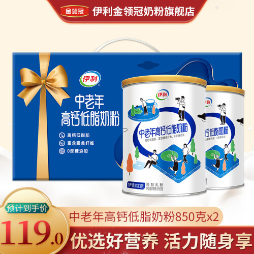 当前的位置: 首页 > 今日值得买 > 伊利中老年高钙低脂奶粉850g*2罐奶粉 中老年人营养早餐牛奶粉礼盒装