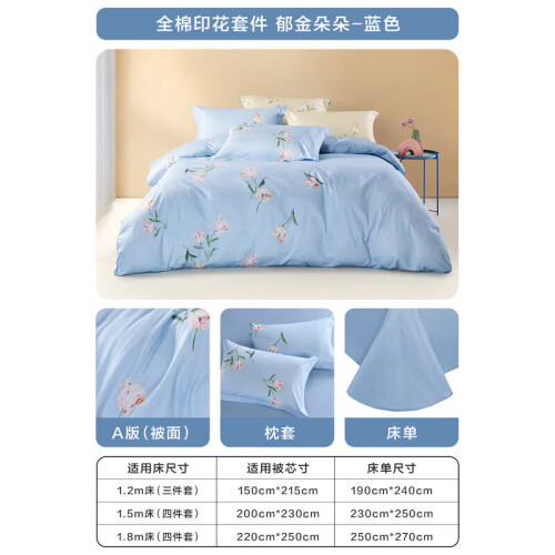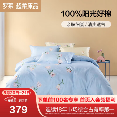 当前的位置: 首页 > 今日值得买 > 罗莱家纺 床上四件套纯棉床单全棉被套件 蓝色 1.8米床220*250