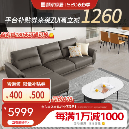 当前的位置: 首页 > 今日值得买 > 顾家家居(KUKA) 京东X顾家家居 国民家居现代轻奢真皮小户型头层牛皮沙发1105 【30天发货】岩石灰 三人位+凳