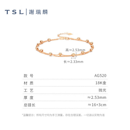 当前的位置: 首页 > 今日值得买 > 谢瑞麟(TSL) 520礼物 18K金玫瑰金手链ins设计间珠手链手饰女款AG520 18K金手链