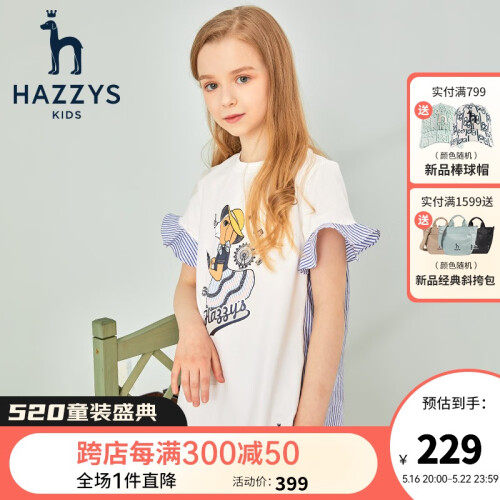 当前的位置: 首页 > 今日值得买 > 哈吉斯(HAZZYS)品牌童装女童裙式上衣夏新款女童儿童圆领花边袖连衣裙中大童时尚 本白 145