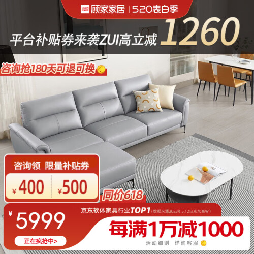 当前的位置: 首页 > 今日值得买 > 顾家家居(KUKA) 京东X顾家家居 国民家居现代轻奢真皮小户型头层牛皮沙发1105 【15天发货】松烟灰 三人位+凳