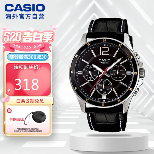 当前的位置: 首页 > 今日值得买 > 卡西欧(CASIO)商务休闲三盘时尚防水石英男士手表 MTP-1374L-1AVDF