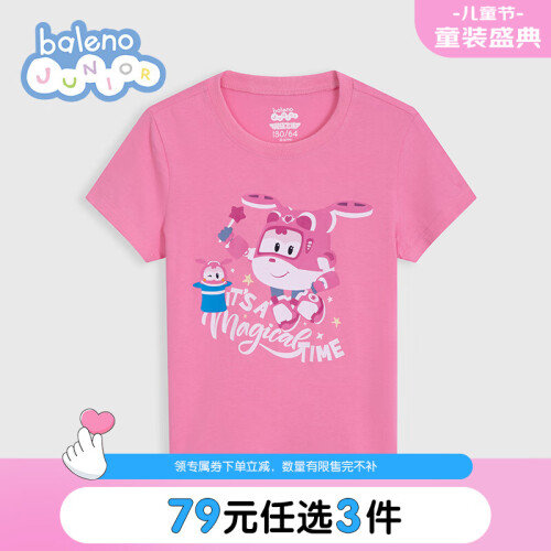 当前的位置: 首页 > 今日值得买 > Baleno Junior[超级飞侠IP]班尼路男女童2023夏季新款印花圆领中大童短袖T恤 77R玫瑰红-女童 130cm