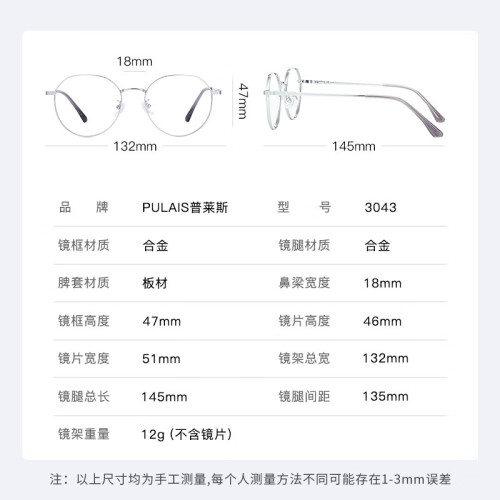 当前的位置: 首页 > 今日值得买 > 普莱斯休闲商务素颜百搭成品光学眼镜框男网上配眼镜架女WX 3043银色 1.67万新防蓝光镜片(200-800度)