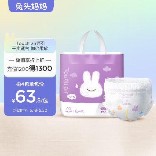 当前的位置: 首页 > 今日值得买 > 兔头妈妈Touchair超薄拉拉裤XXXL26片(18kg以上)宝宝尿片尿不湿轻薄透气