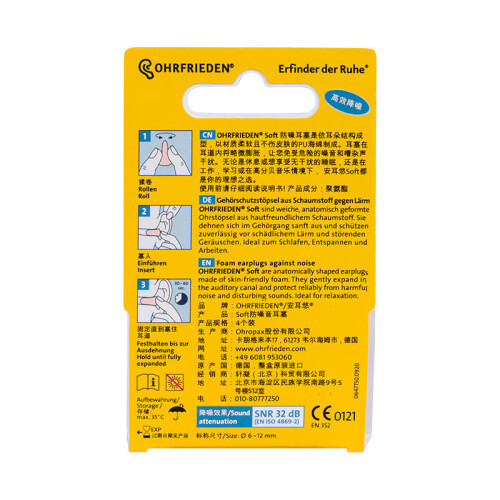 当前的位置: 首页 > 今日值得买 > 安耳悠 隔音耳塞 男士女士专用防噪音睡眠耳塞 防呼噜声睡觉工作学习用入耳式 德国原装进口soft 2副装