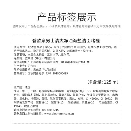 当前的位置: 首页 > 今日值得买 > 碧欧泉(BIOTHERM)男士清爽净油海盐洁面啫喱125ML洗面奶 净肤 520情人节礼物送男友