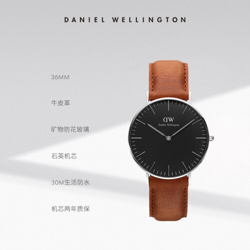 当前的位置: 首页 > 今日值得买 > 丹尼尔惠灵顿(DanielWellington) dw魅黑手表男 个性时尚欧美男士石英腕表送男友 520礼物送男生 36MM棕皮带银色黑盘DW00100144