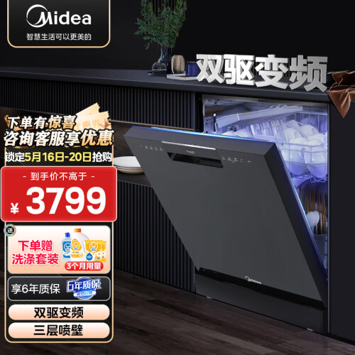 当前的位置: 首页 > 今日值得买 > 美的(Midea)13/15套家用洗碗机RX600嵌入式独立式三层喷臂 热风烘干 洗烘存一体全自动智能家电
