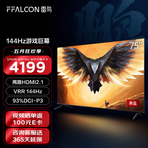 当前的位置: 首页 > 今日值得买 > FFALCON雷鸟 游戏电视75英寸鹏7PRO 144Hz高刷 HDMI2.1 智慧屏 3+64GB 4K超高清超薄液晶电视75S575C