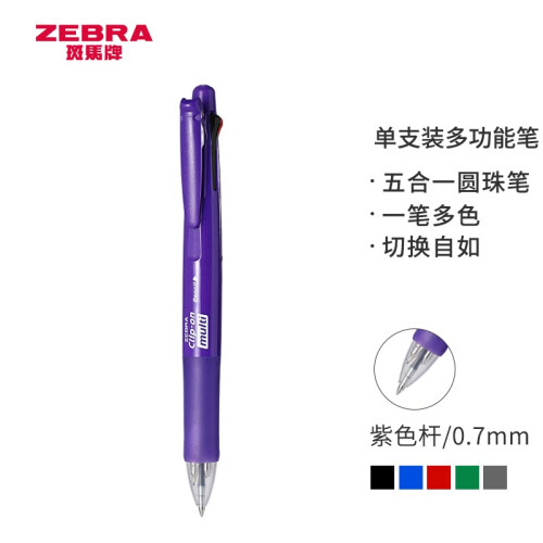 当前的位置: 首页 > 今日值得买 > 斑马牌 (ZEBRA)四色圆珠笔带自动铅笔(四色圆珠笔+铅笔) 0.7mm子弹头按动多功能多色笔 B4SA1 紫色杆