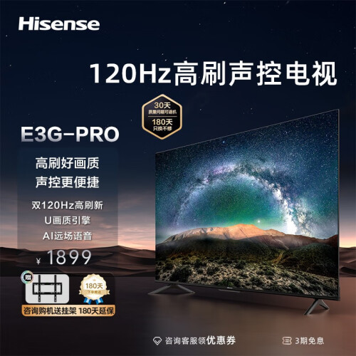 当前的位置: 首页 > 今日值得买 > 海信电视 55英寸 55E3G-PRO 4K超高清 AI远场语音 120Hz防抖超薄全面屏 2+32GB 智能液晶平板电视机