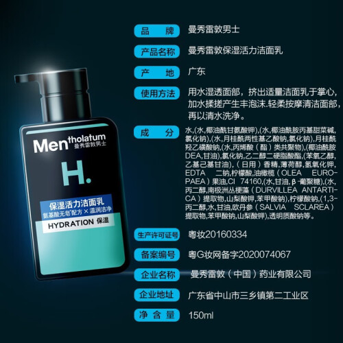 当前的位置: 首页 > 今日值得买 > 曼秀雷敦(Mentholatum) 曼秀雷敦控油清爽洁面保湿深层清 保湿活力洁面乳 150ml