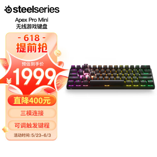当前的位置: 首页 > 今日值得买 > 赛睿 (SteelSeries) Apex Pro mini三模机械键盘 无线/蓝牙 办公游戏键盘可调触发键程 RGB灯效 PBT键帽 61键