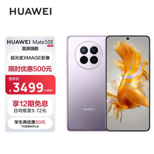 当前的位置: 首页 > 今日值得买 > HUAWEI Mate 50E 直屏旗舰 超光变XMAGE影像 鸿蒙操作系统3.0 超能续航 128GB 流光紫 华为鸿蒙手机