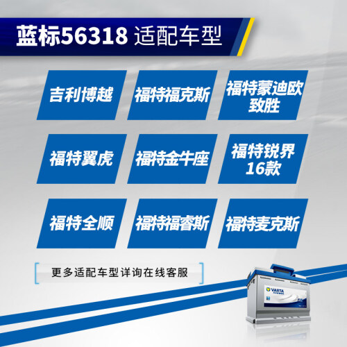当前的位置: 首页 > 今日值得买 > 瓦尔塔(VARTA)汽车电瓶蓄电池蓝标56318福特蒙迪欧致胜福特金牛座帝豪锐界翼虎