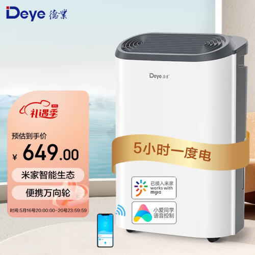 当前的位置: 首页 > 今日值得买 > 德业(Deye) 除湿机/抽湿机 除湿器12升/天 家用轻音吸湿器、地下室干燥/干衣机 Z12A3【米家智联版】