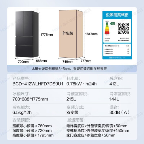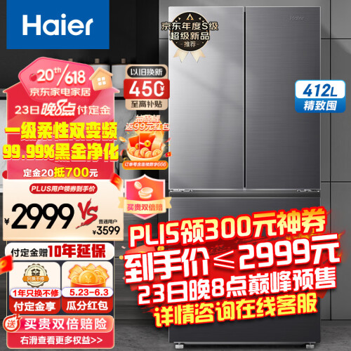 当前的位置: 首页 > 今日值得买 > 海尔(Haier)冰箱412升法式多门双开门开四门一级能效双变频风冷无霜家用净味保鲜超薄嵌入式智能家电冰箱 412升星韵银+1级双变频+升级黑金净化+三档变温