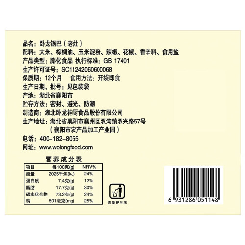 当前的位置: 首页 > 今日值得买 > 卧龙手工锅巴老灶锅巴襄阳特产休闲零食麻辣味 400g/袋