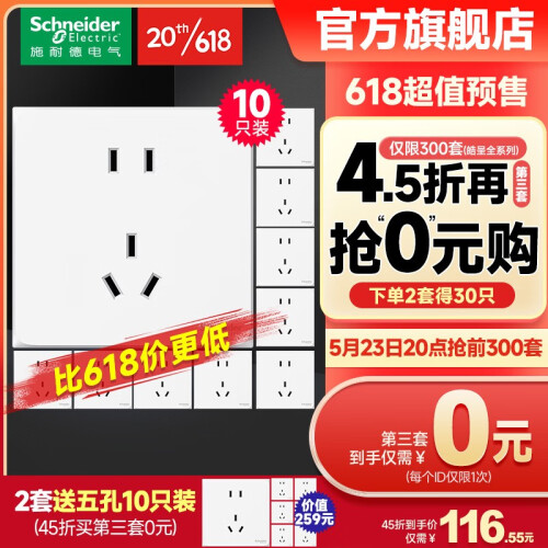 当前的位置: 首页 > 今日值得买 > 施耐德开关插座面板 家用10A五孔插座 86型墙壁电源插座 皓呈奶油白色 五孔插座10只装【新国标】
