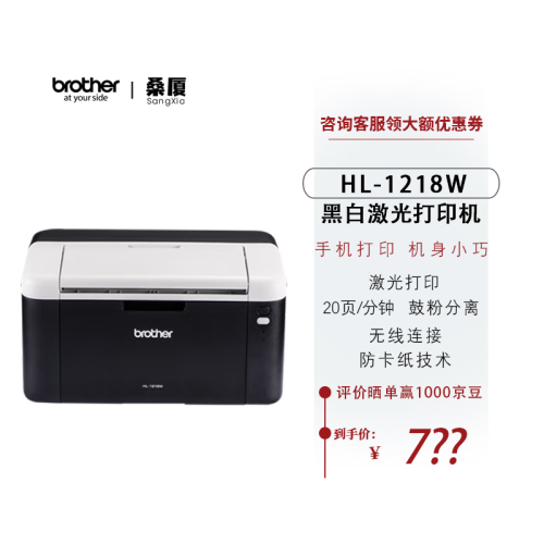 当前的位置: 首页 > 今日值得买 > 兄弟(brother)HL-1218W黑白激光单打印机小型打印办公家用作业无线网络wifi文档A4 HL-1218W官方标配