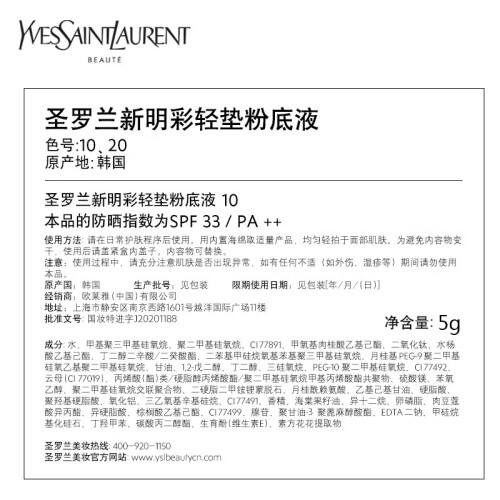 当前的位置: 首页 > 今日值得买 > 圣罗兰(YSL)明彩轻垫粉底液B20 SPF35PA++ 5g(迷你皮气垫)