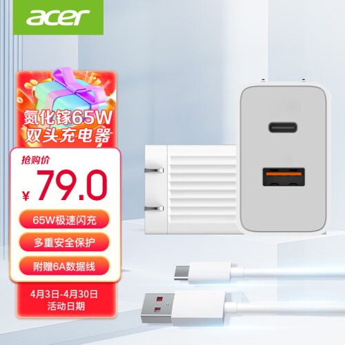 当前的位置: 首页 > 今日值得买 > 宏碁 氮化镓65W超级快充 双头充电器 华为协议兼容苹果iPad小米vivo 充电器+TypeC线