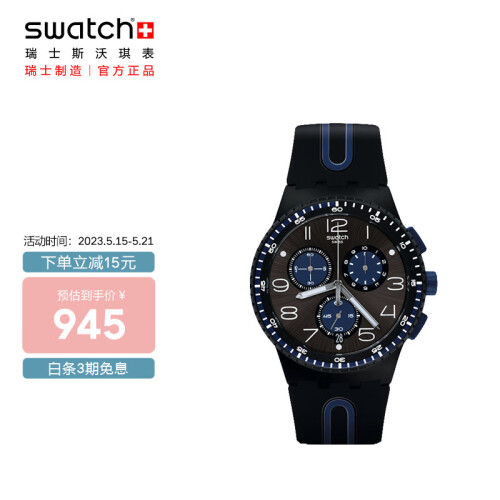 当前的位置: 首页 > 今日值得买 > 斯沃琪(Swatch)瑞士手表 原创系列 黑蓝轻舟 计时夜光学生礼物男女石英表SUSB406