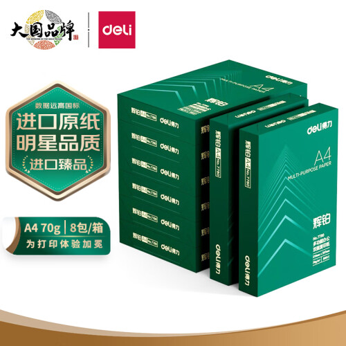 当前的位置: 首页 > 今日值得买 > 得力(deli)辉铂A4打印纸 70g克500张*8包一箱 进口原纸复印纸 双面草稿纸 整箱4000张 7784