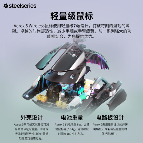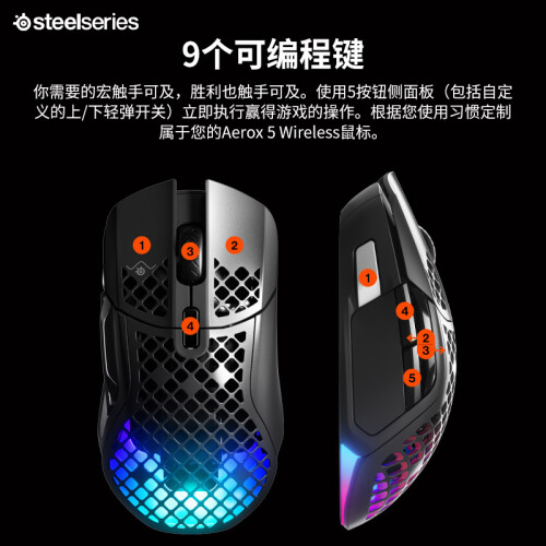 当前的位置: 首页 > 今日值得买 > 赛睿(SteelSeries)洞洞鼠系列 Aerox 5无线/蓝牙游戏电竞鼠标 三模 IP54防护 74g轻量化 9键编程 哑光面 黑色