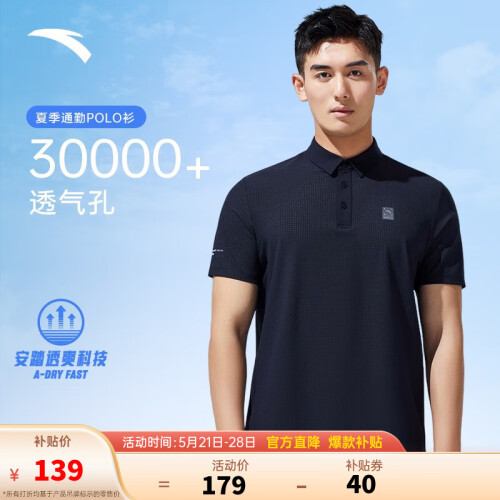 当前的位置: 首页 > 今日值得买 > 安踏(ANTA)型动POLO衫丨男士易速干打理短袖T恤2023夏季商务通勤休闲上衣 基础黑-3 L/男175