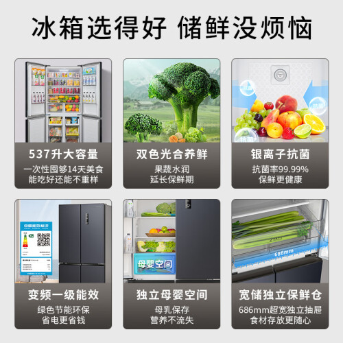 当前的位置: 首页 > 今日值得买 > 创维(SKYWORTH)【光鲜系列】537升十字对开门四开门风冷无霜一级能效家用电冰箱超薄大容量BCD-537W4B1
