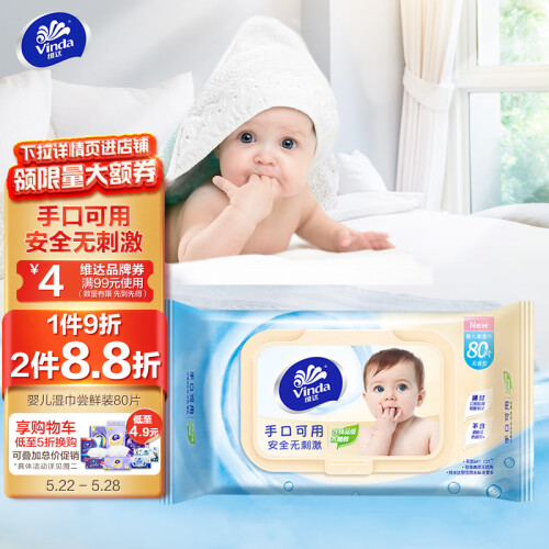 当前的位置: 首页 > 今日值得买 > 维达(Vinda)湿巾 湿纸巾婴儿湿巾纸 手口湿巾80片*单包 宝宝湿巾 安全无刺激